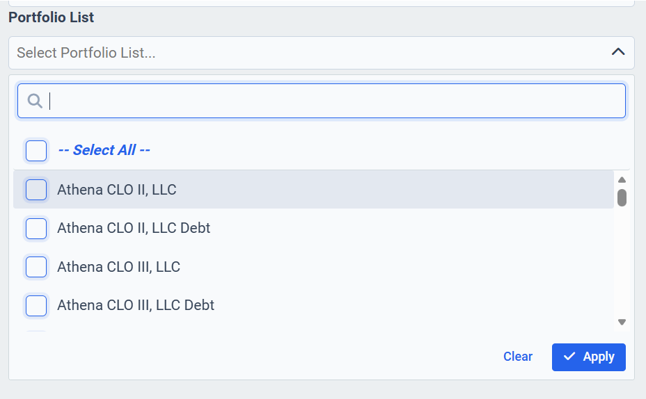 For multi-select versions have an ever present 'All' choice which will enable users to have new portfolios added dynamically